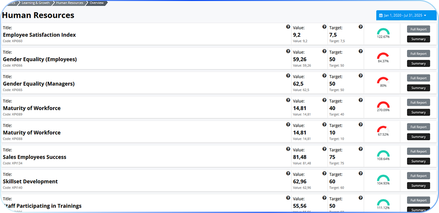 Δείτε κάθε δείκτη ανά στόχο, τμήμα ή διάσταση της επιχείρησης.